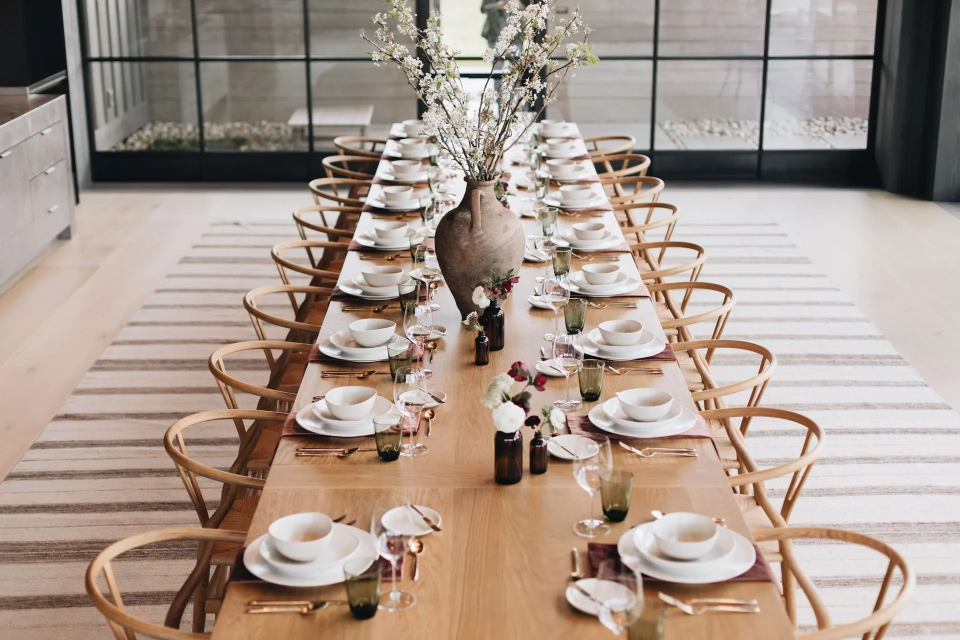 We supplied our Pearland planks – an engineered French oak floor with planks that are 18 inches wide and a minimum of 20ft long – to further enhance the feeling of light and space in the dining area, which features a long center table for convivial gatherings and shared wine tasting events.
