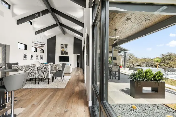 With stunning golf course views, this home in Boerne’s Cordillera Ranch blends modern with classic Hill Country style using luxury WoodCo flooring.