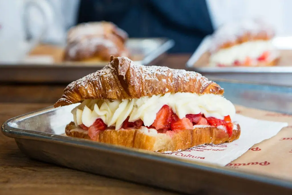 This ethos extends to the café interiors themselves, which are designed for a convivial feel that encourages patrons to linger over hearty tortas, filled croissants and the bakery’s signature French toast.