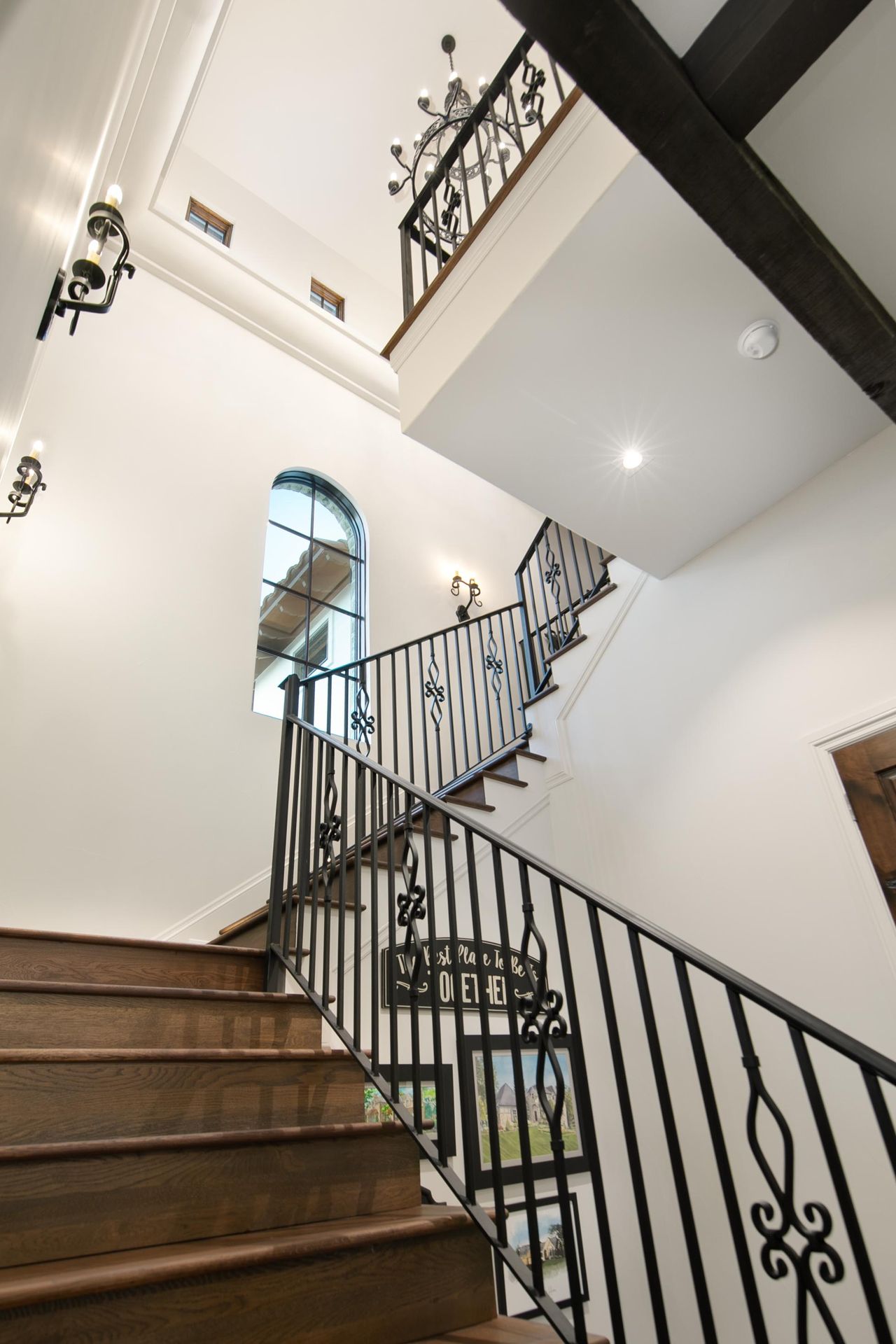 An elegant staircase with hand forged handrails leads you upstairs to a private lounge and additional bedrooms and baths with distant views of Cordillera Ranch.