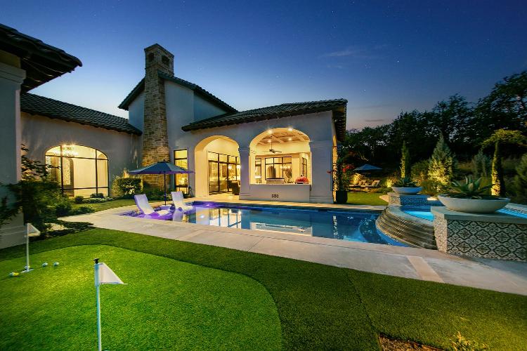 A gorgeous naturally shaped pool with water features provide the finishing touches for out of state clients seeking to enjoy the beautiful Texas Hill Country sunsets year round.