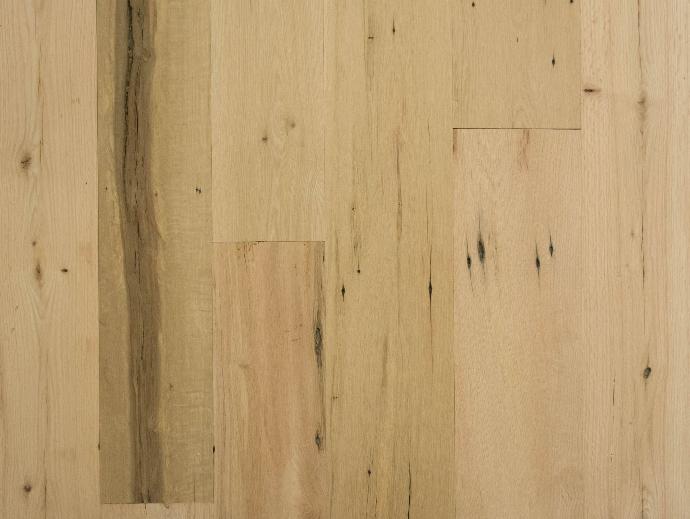 Reclaimed oak tends to have tighter grain patterns and be more golden in color than new oak lumber making for a very interesting solid wood floor.