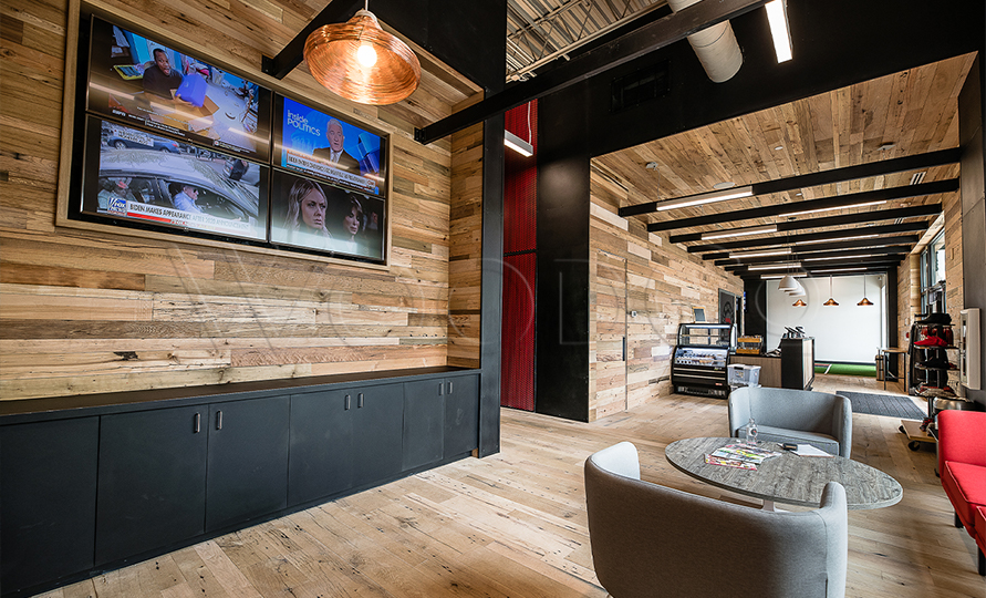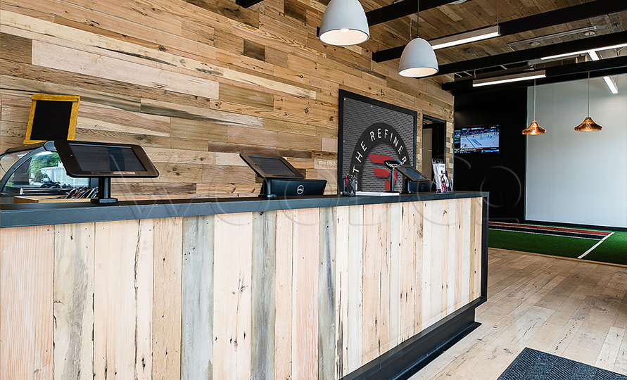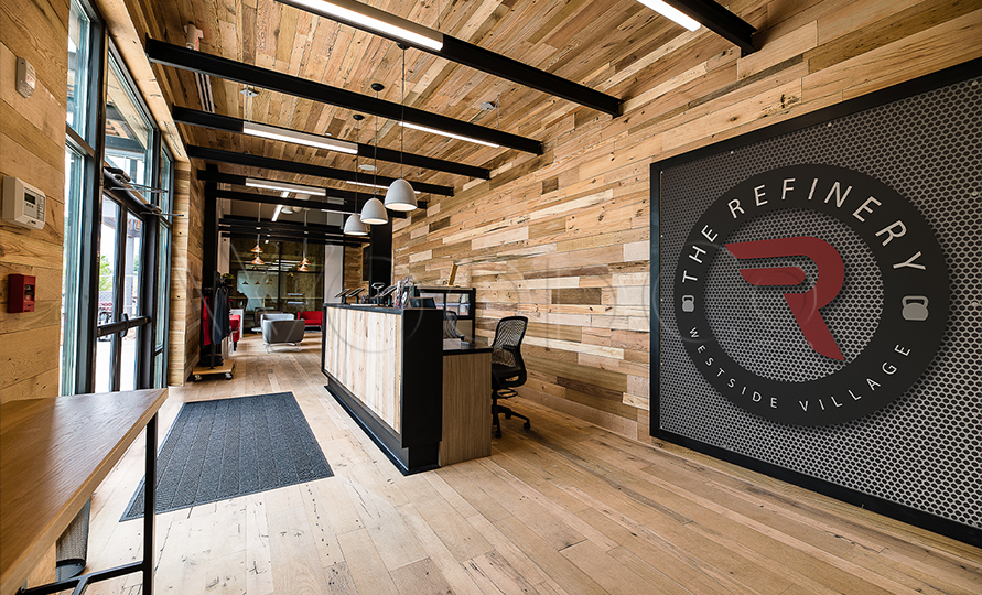 This beautiful facility combines the natural reclaimed wood with dark, bold accents for a gorgeous modern look.