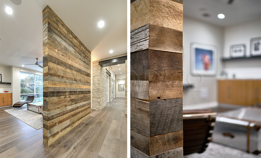 Mixed hardwoods, patina face wall paneling | barn wood | barn siding.